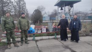 По благословению Высокопреосвященнейшего архиепископа Аркадия, прот. Вячеслав Берчук, настоятель Ксениевского храма г. Суходольск, и иером. Зинон Тершуков, и/о настоятеля храма «Умиление», передали военным инструменты и средства гигиены.